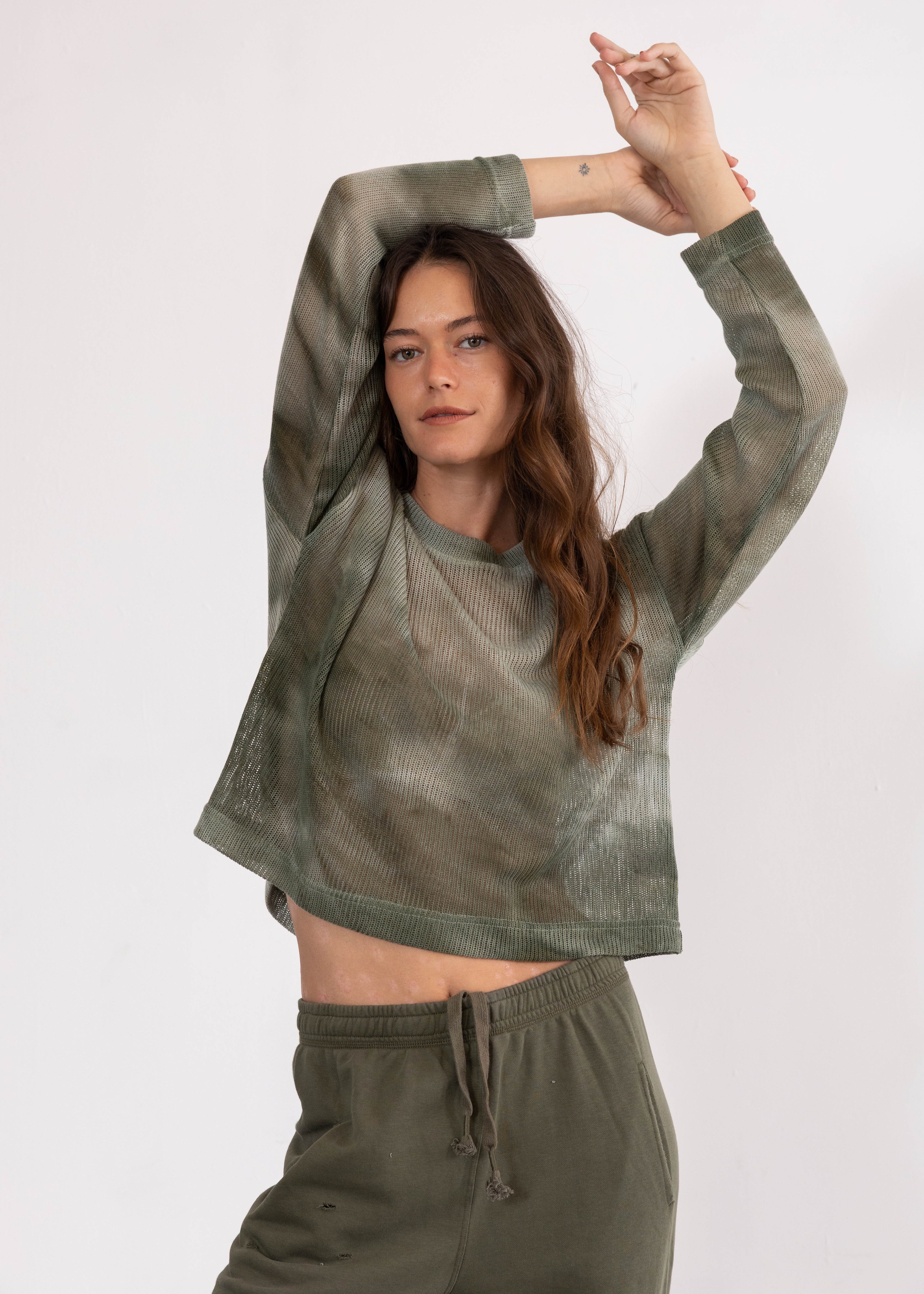 סריג אוורירי, בצביעת בטיק,  אוברסייז, אורך קרופ