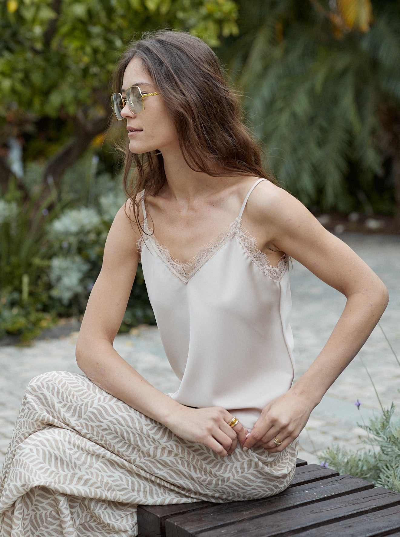 גופיה מבד סאטן, מחשוף וי, תחרה מסביב