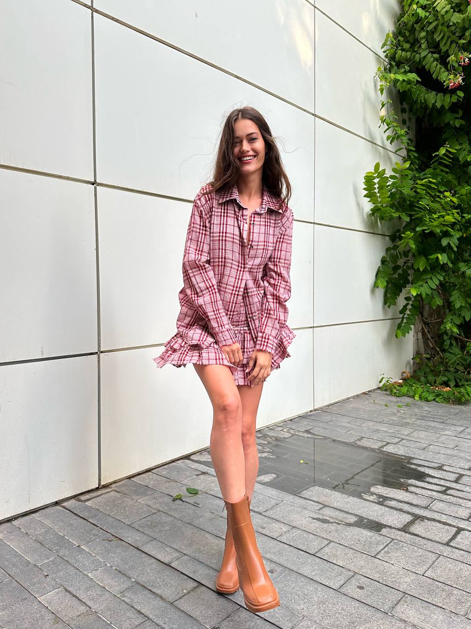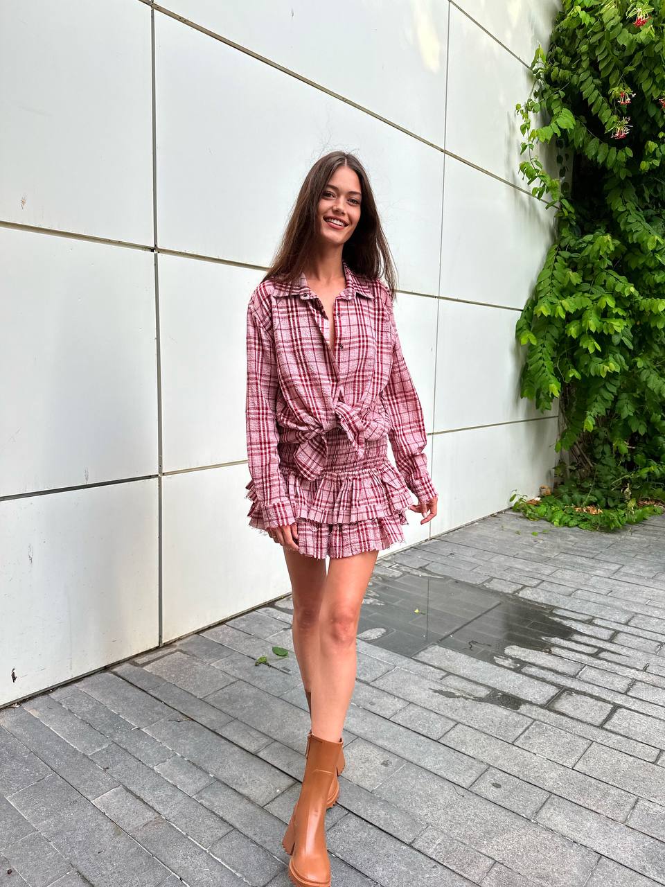 PLAID SKIRT WINE