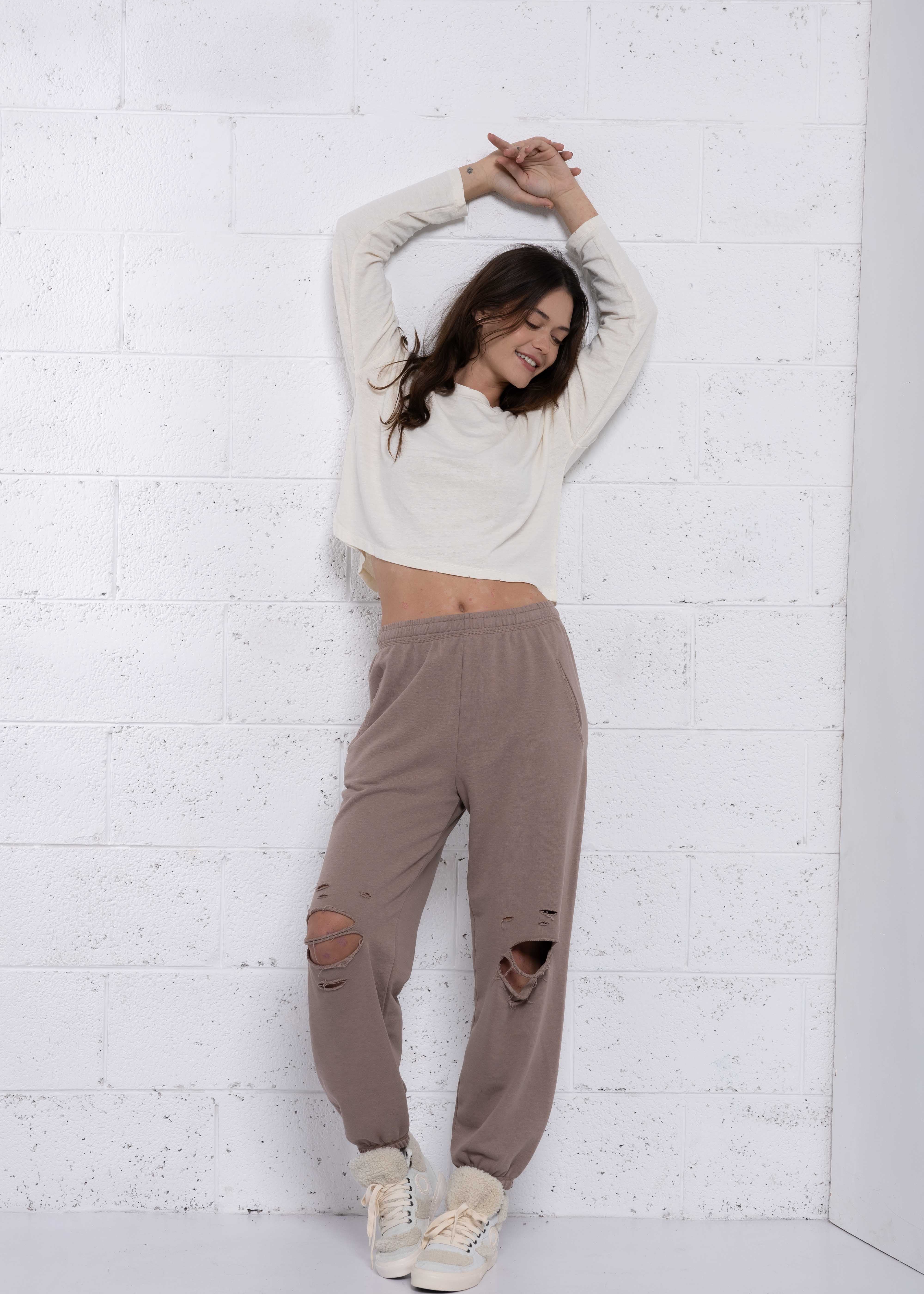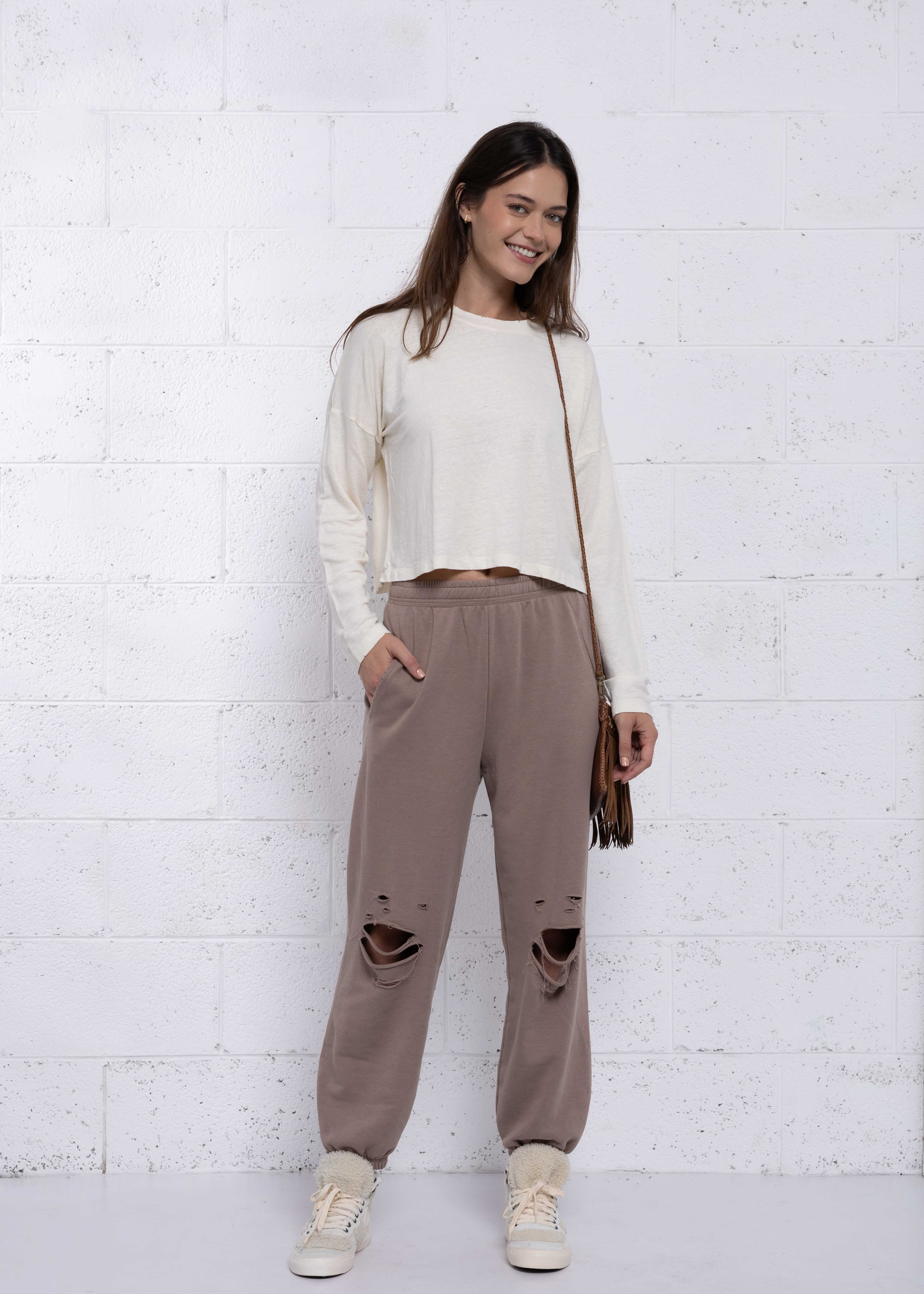 טישרט פשתן אוברסייז, מחשוף עגול, אורך קרופ