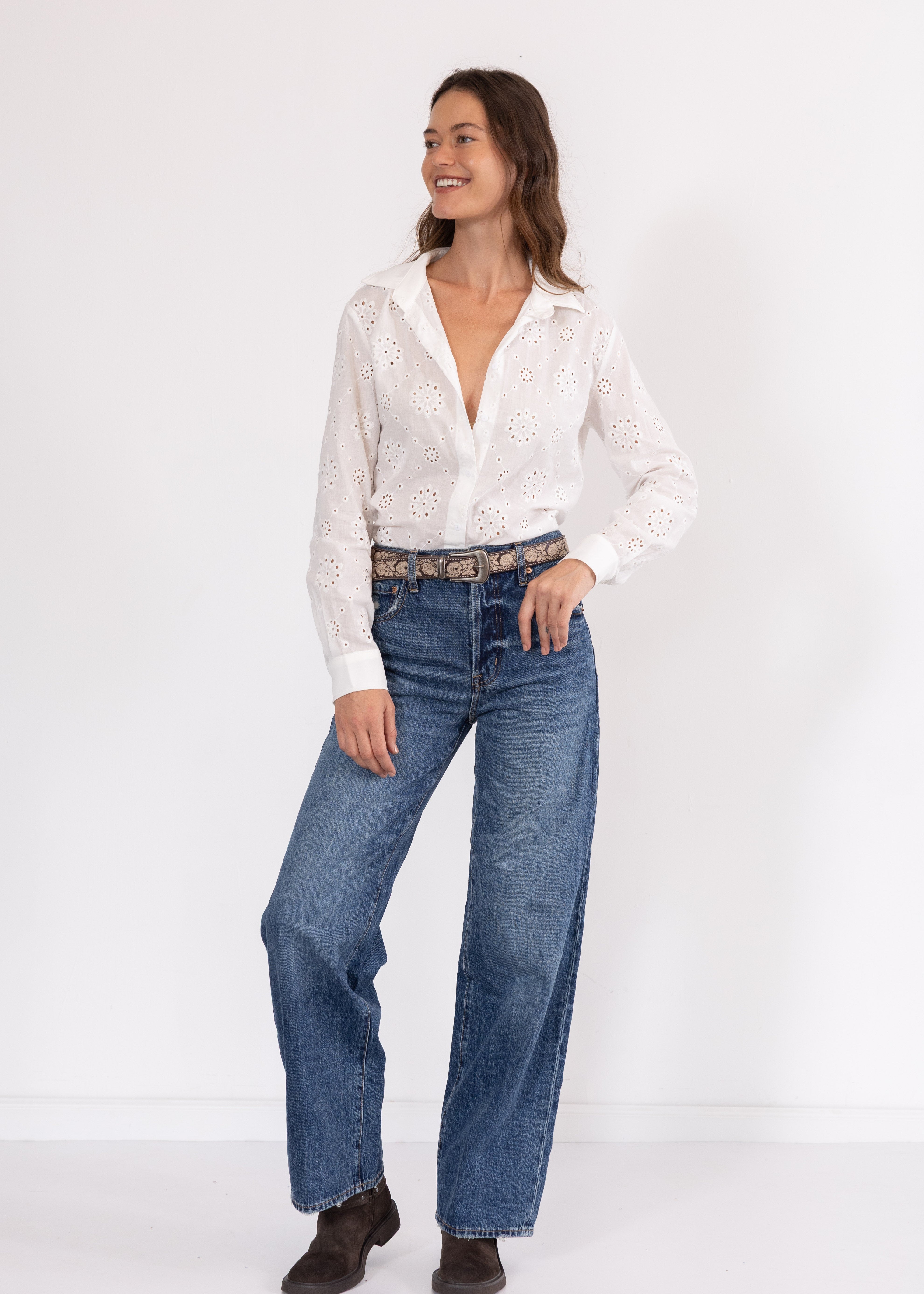 חולצה מכופתרת, צווארון גברי, כותנה רקומה