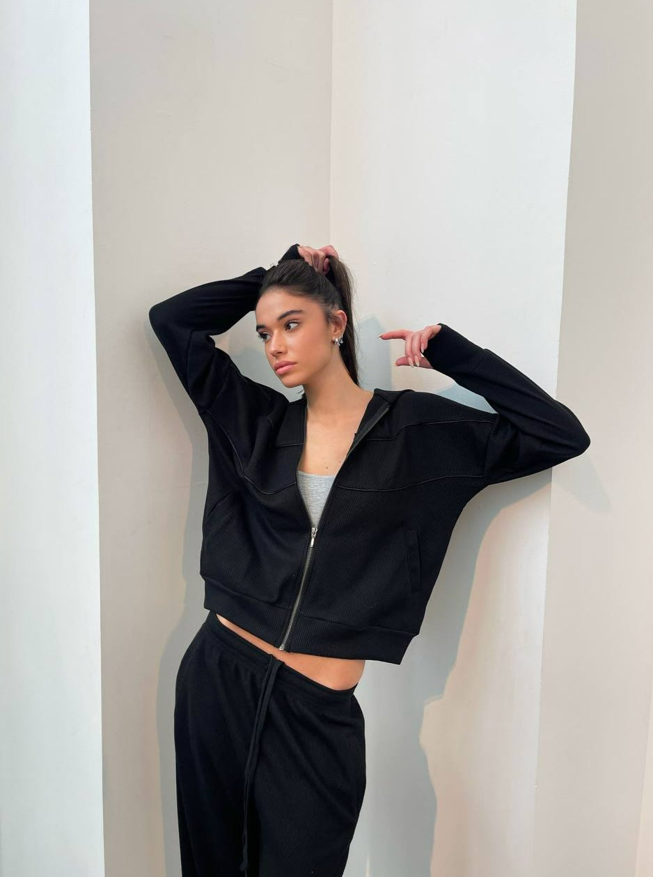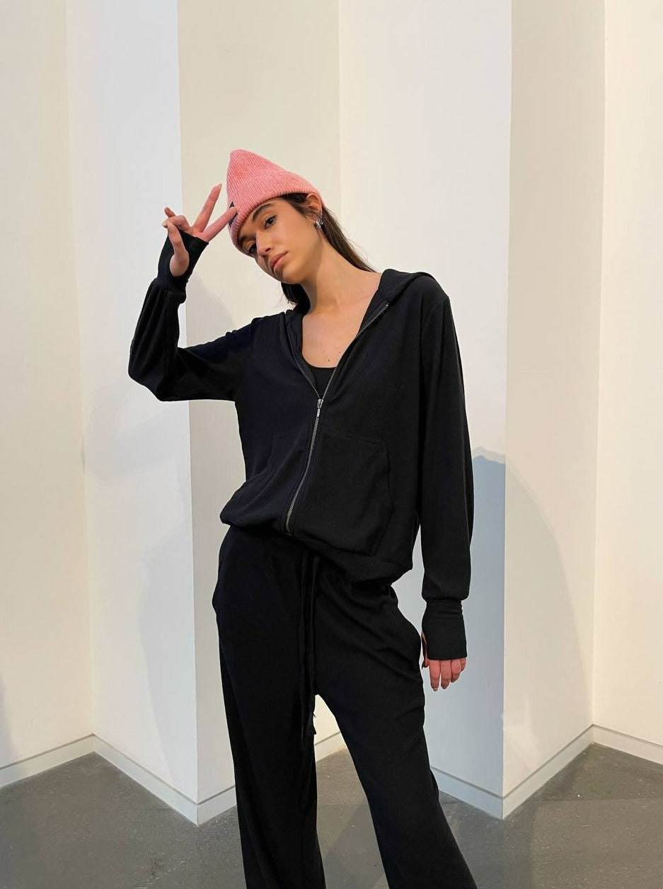 RIB HOODIE BLACK