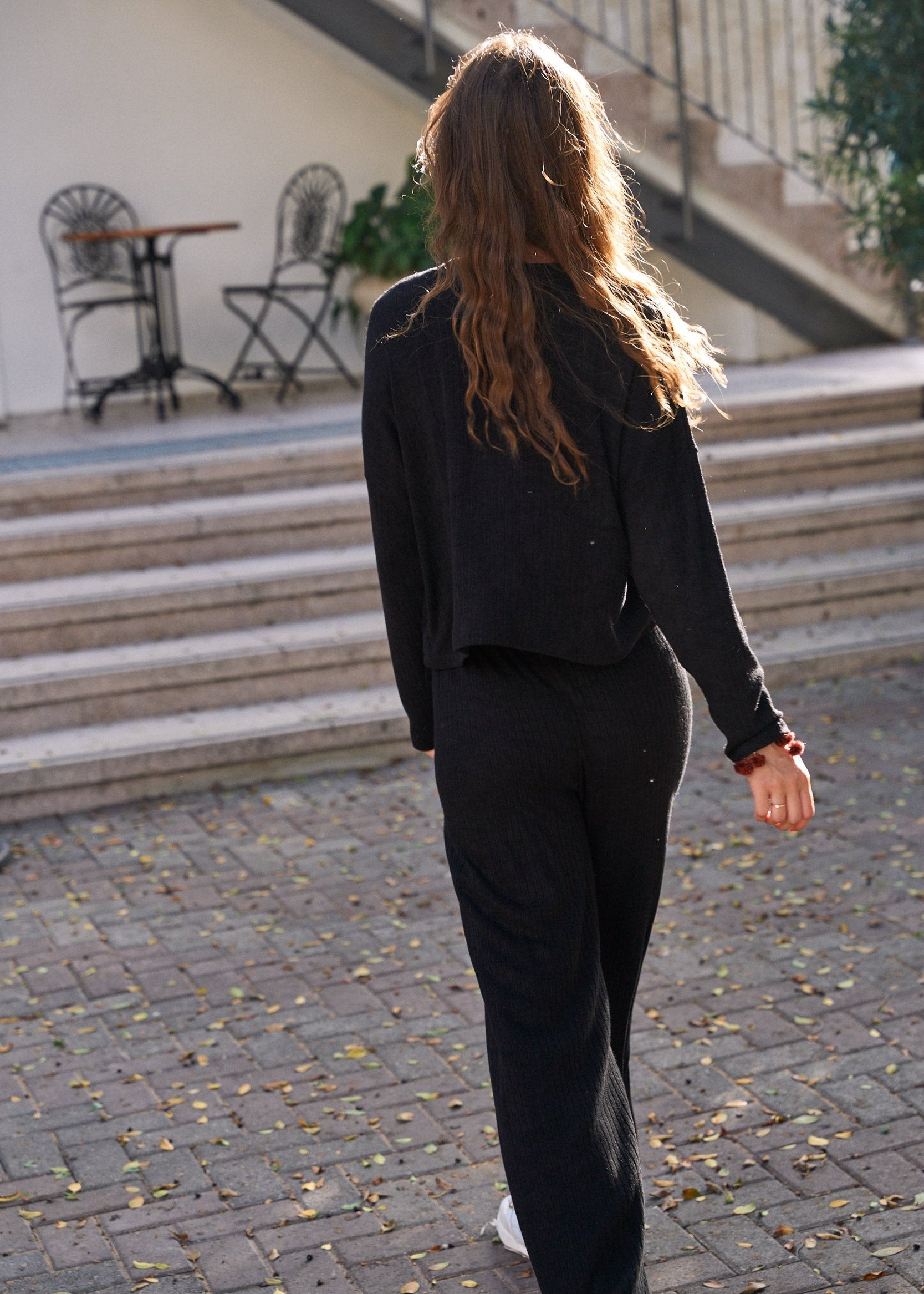 מכנס סריג אוברסייז, טקסטורת פסים, כיסים בצדדים